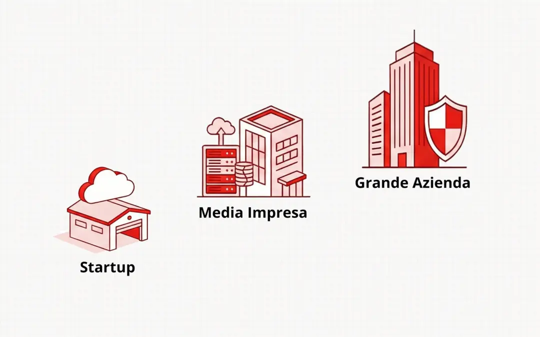 Una startup ha bisogno di cloud e flessibilità. Una media impresa richiede architetture ibride e backup strutturati. Una grande organizzazione necessita di ridondanza totale e conformità agli standard internazionali.